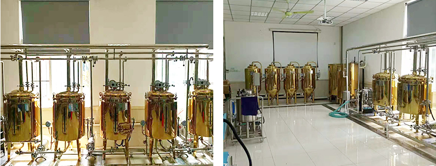 上海食品科技學校啤酒教學實驗線,ZH-100L紫銅五器實驗設備,精品工程、尊皇助力。